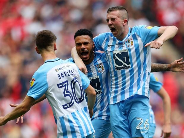 The Sky Blues, gripped by off-field issues, have been on the wane since the heady days of being a Premier League club, but they returned to League One at the first attempt thanks to second-half goals from Jordan Willis, Jordan Shipley and Jack Grimmer.